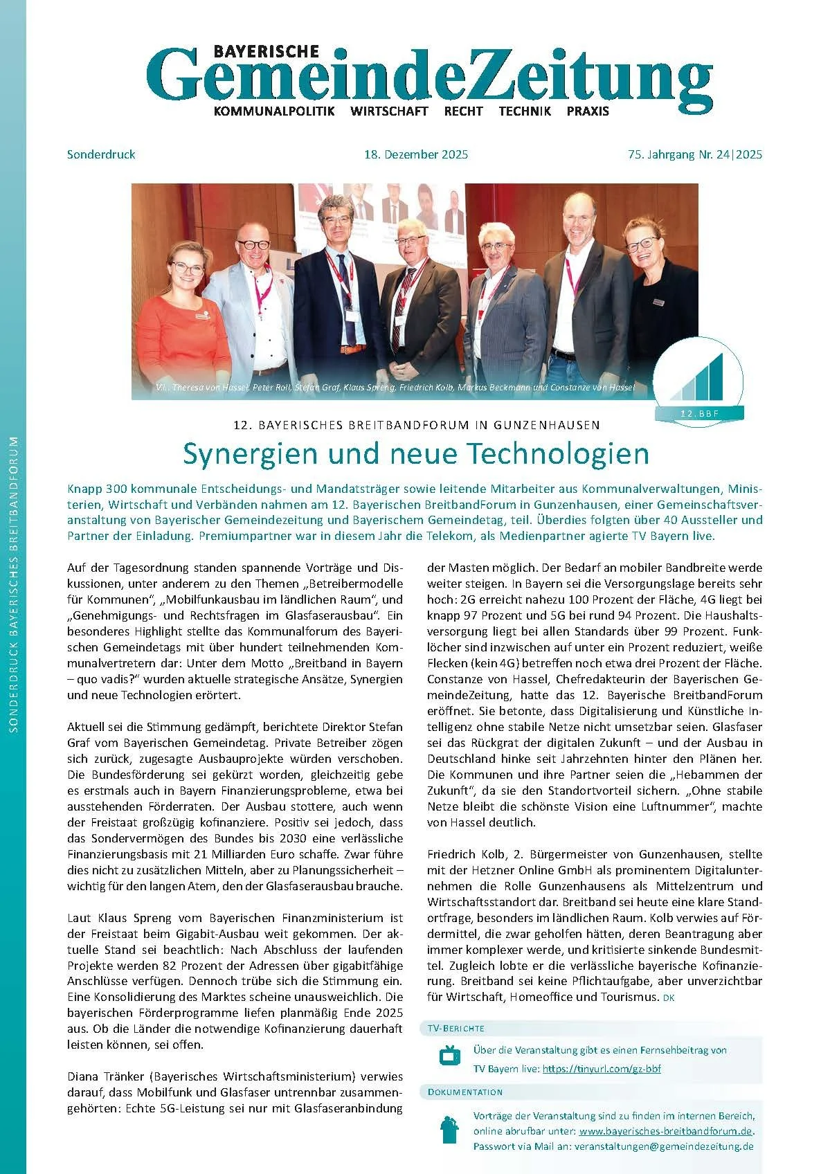 12. BAYERISCHES BREITBANDFORUM IN GUNZENHAUSEN